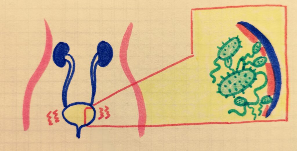 C’entra eccome, perché può succedere, soprattutto a chi soffre di stitichezza o sindrome dell’intestino irritabile, che questo batterio cresca a dismisura a livello intestinale (“sovracrescita batterica”) e riesca a passare dalla mucosa intestinale all’interno della vescica e dell’uretra con un meccanismo che si chiama “traslocazione batterica”.